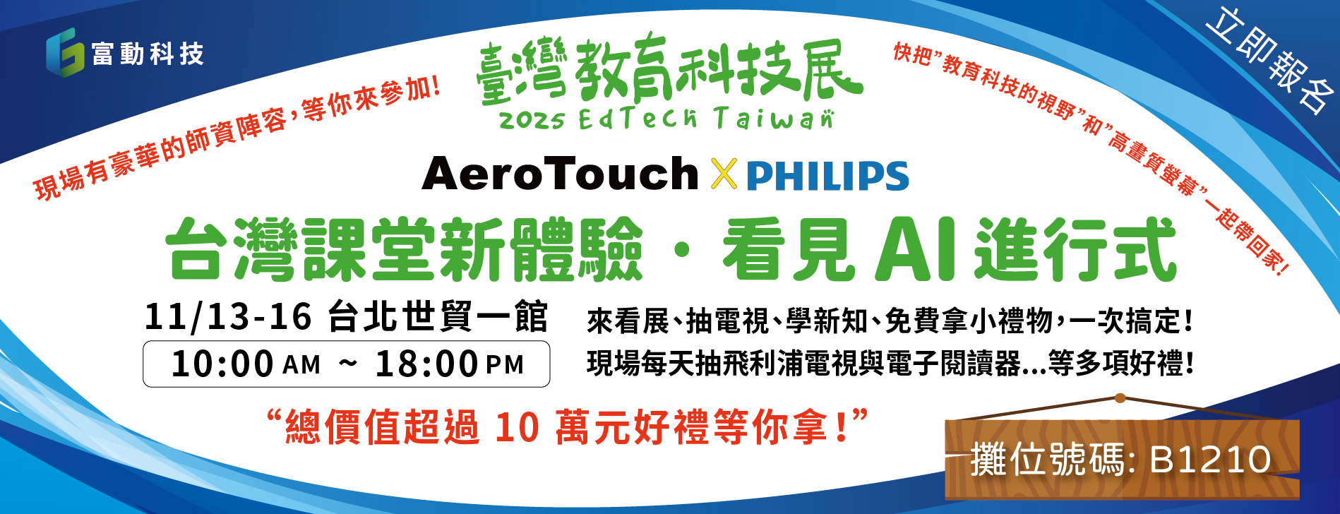 今年富動科技以「智慧教育 × 在地創新」為核心,攜手PHILIPS共同展示最完整的智慧教學解決方案,從互動黑板、AI 顯示管理系統,到電子閱讀與校園標牌,一次呈現「AI 進行式」的未來課堂。
