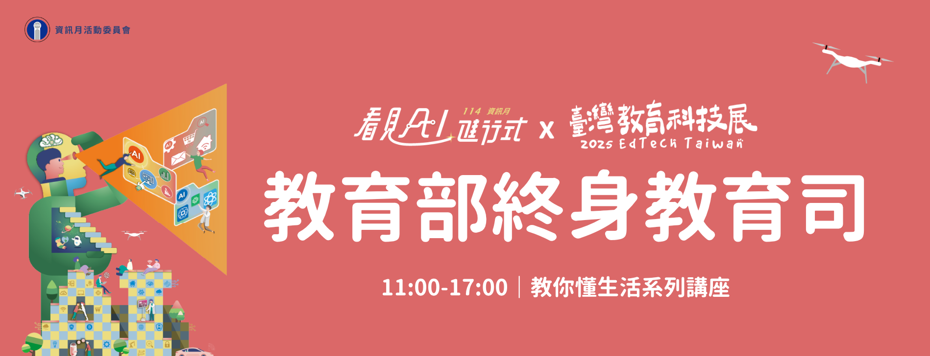 - 如您為教育工作者,參觀資訊月暨臺灣教育科技展並參與現場講座、導覽活動,核予教職人員進修研習時數,請於預約系統填寫身分證字號至服務台報到完成換證,未完成者不予核發。