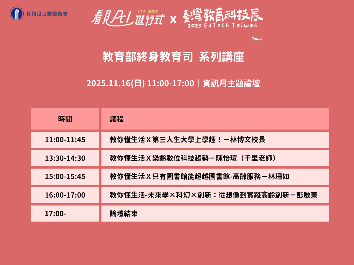 11/16(日) 教育部終身教育司主題論壇